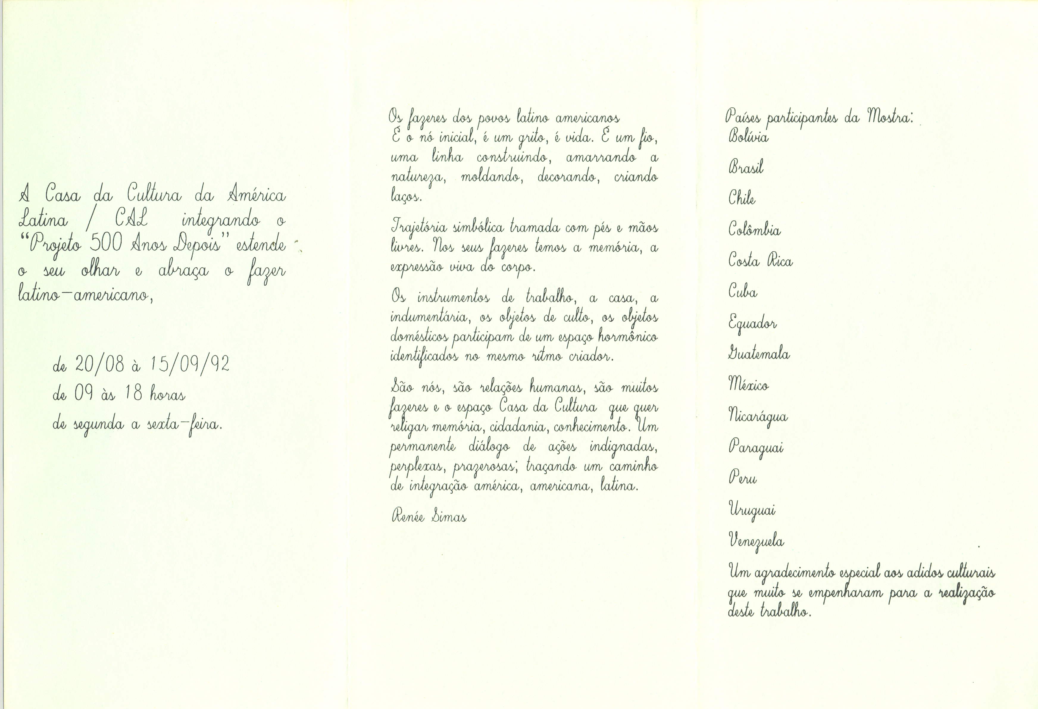 Artesanato Latino-Americano e Caribenho Voltar 17 de maio de 2019 by fciadm   Documento 92.004 capa Baixar Anexos 92.004 interno Metadados Miniatura Compartilhe Nome do eventoArtesanato Latino-Americano e CaribenhoCom imagem?SimTipo do eventoExposiçãoEvento relacionadoProjeto 500 AnosAno1992Início20 de AgostoTérmino15 de SetembroDiretorRenée Gunzburger SimasLocalCasa da Cultura da América Latina > GaleriasDocumento relacionado92.014 Continuar navegando Cristovão Colombo o Genovês Livros sobre Arquitetura na América Latina e Caribe Voltar para a lista de itens
