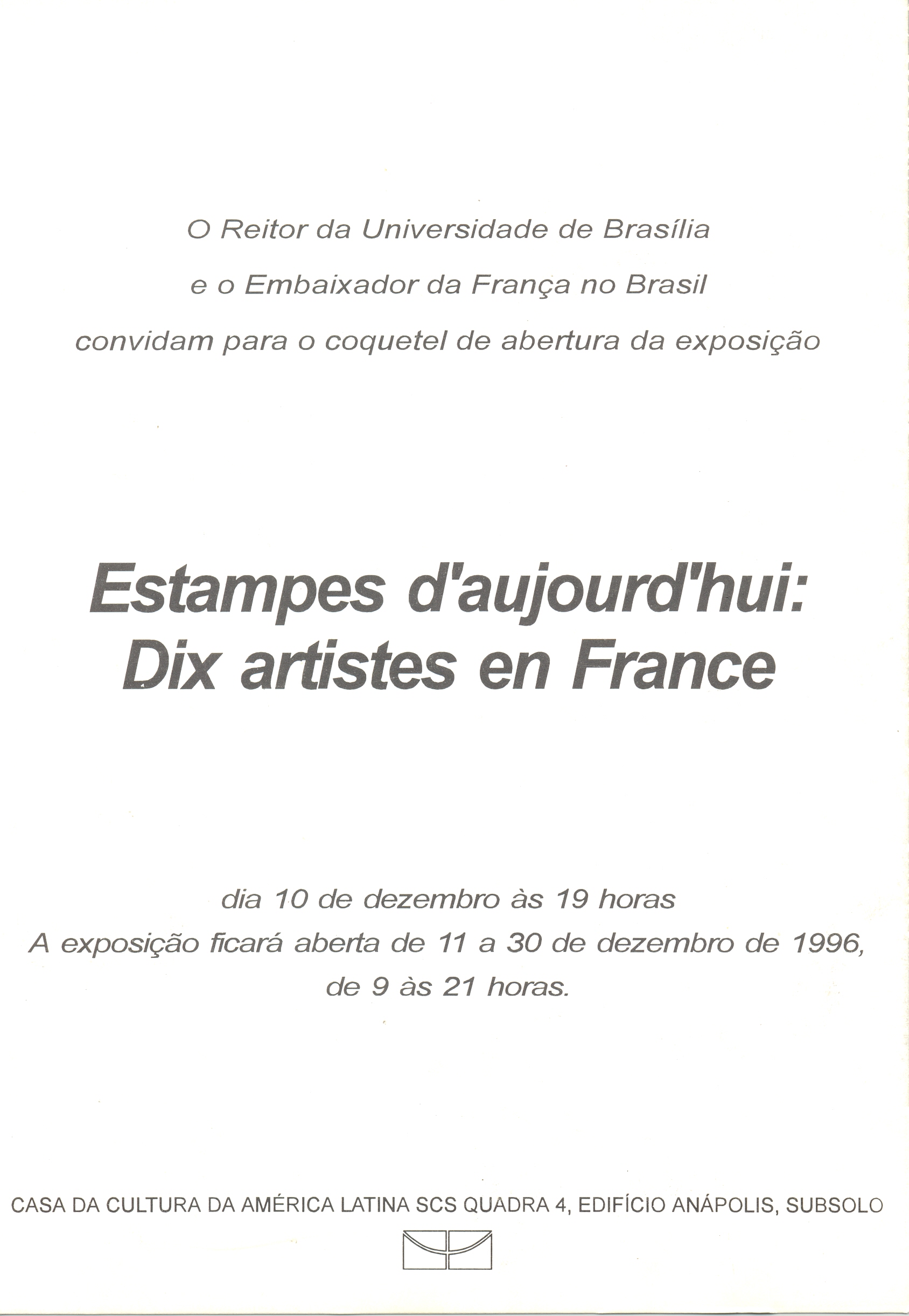 Estampes de Aujourd’Hui: Dix Artists en France Voltar 17 de maio de 2019 by fciadm   Documento 96.050 frente Baixar Anexos 96.050 verso Metadados Miniatura Compartilhe Nome do eventoEstampes de Aujourd'Hui: Dix Artists en FranceCom imagem?SimTipo do eventoExposiçãoAno1996Início10 de DezembroTérmino30 de DezembroDiretorRenée Gunzburger SimasArtistaJena HélionLocalCasa da Cultura da América Latina > GaleriasDocumento relacionado96.050 | 96.051 | 96.073 Continuar navegando Música Barroca Natividade Voltar para a lista de itens