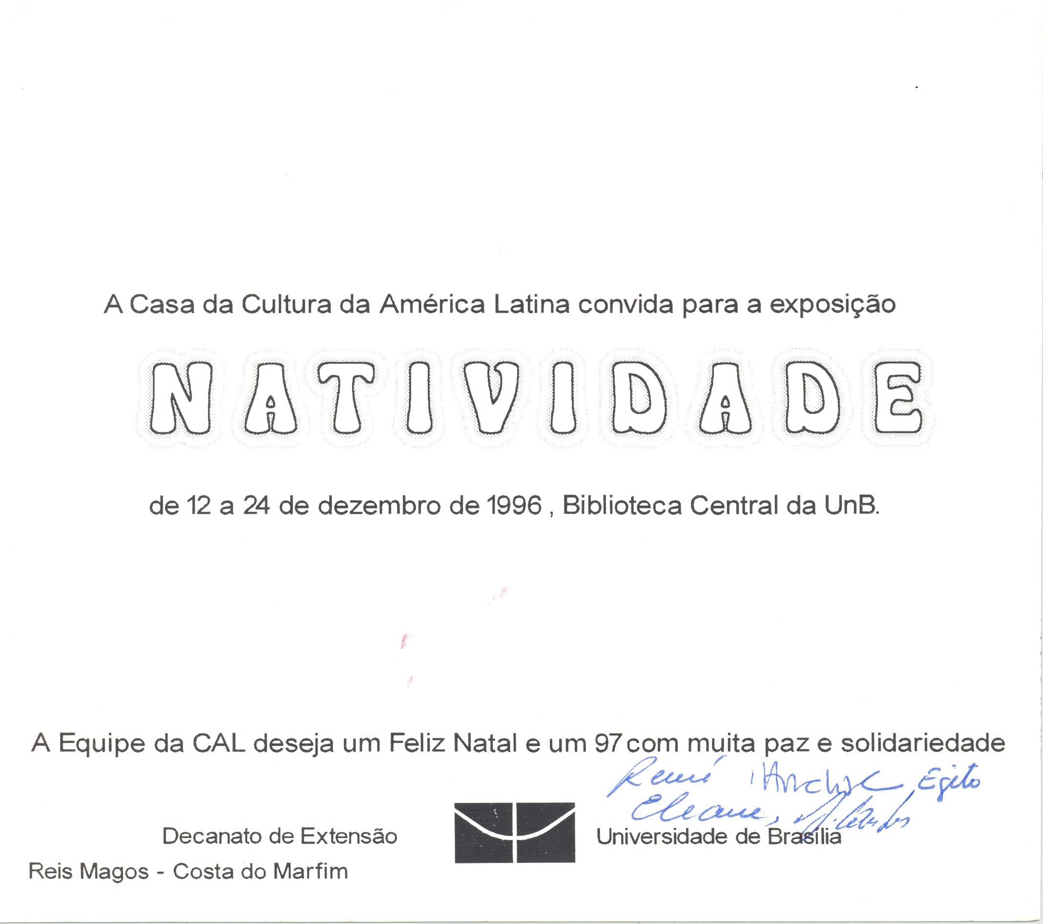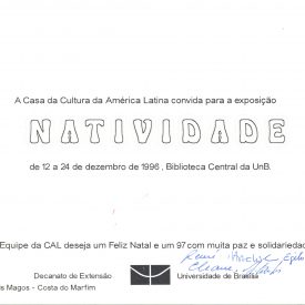 Natividade Voltar 17 de maio de 2019 by fciadm   Documento 96.053 frente Baixar Anexos 96.054 verso Metadados Miniatura Compartilhe Nome do eventoNatividadeCom imagem?SimTipo do eventoExposiçãoAno1996Início14 de DezembroTérmino24 de DezembroDescrição do eventoMostra de presépios e réplicas de obras que retratam a NatividadeDiretorRenée Gunzburger SimasLocalUniversidade de Brasília > Campus Darcy Ribeiro > Biblioteca CentralDocumento relacionado96.052 | 96.053 | 96.054 | 96.055 Continuar navegando Estampes de Aujourd’Hui: Dix Artists en France Arte Latina Voltar para a lista de itens