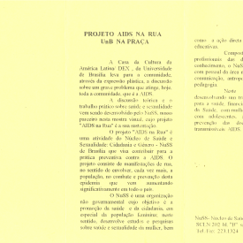 Início > Coleções > Memória Institucional > Projeto AIDS – Exposição dos trabalhos realizados por artistas de Brasília no Dia Mundial contra AIDS (1/12/94)