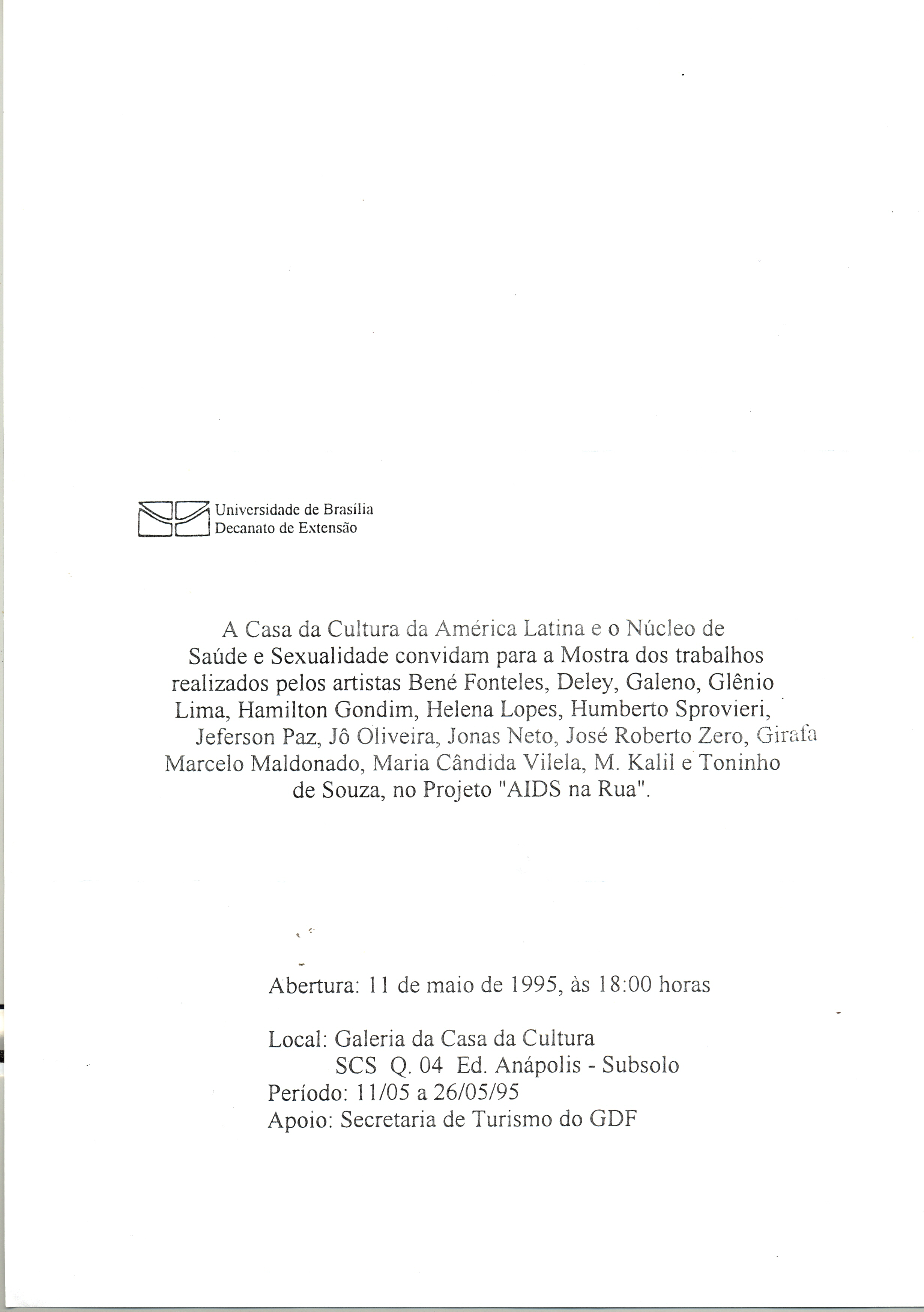 Projeto AIDS – Exposição dos trabalhos realizados por artistas de Brasília no Dia Mundial contra AIDS (1/12/94)